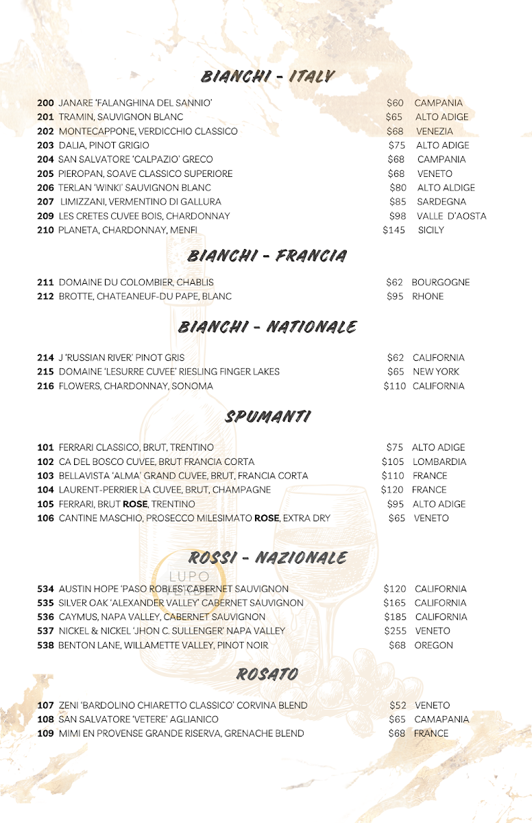 Angus beef patty, prosciutto di parma, smoked mozzarella, tomatoes, caramelized onions, Lupo sauce
